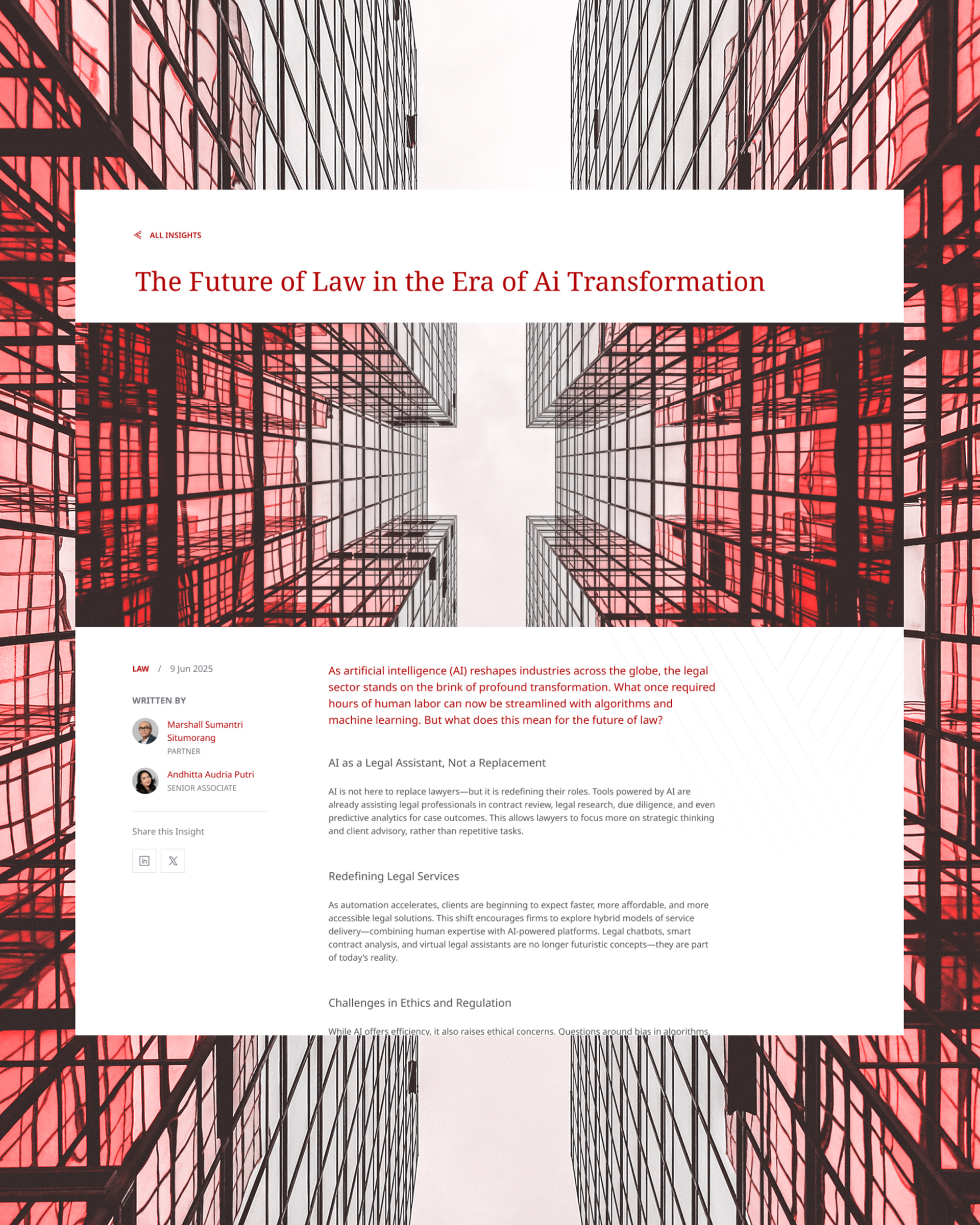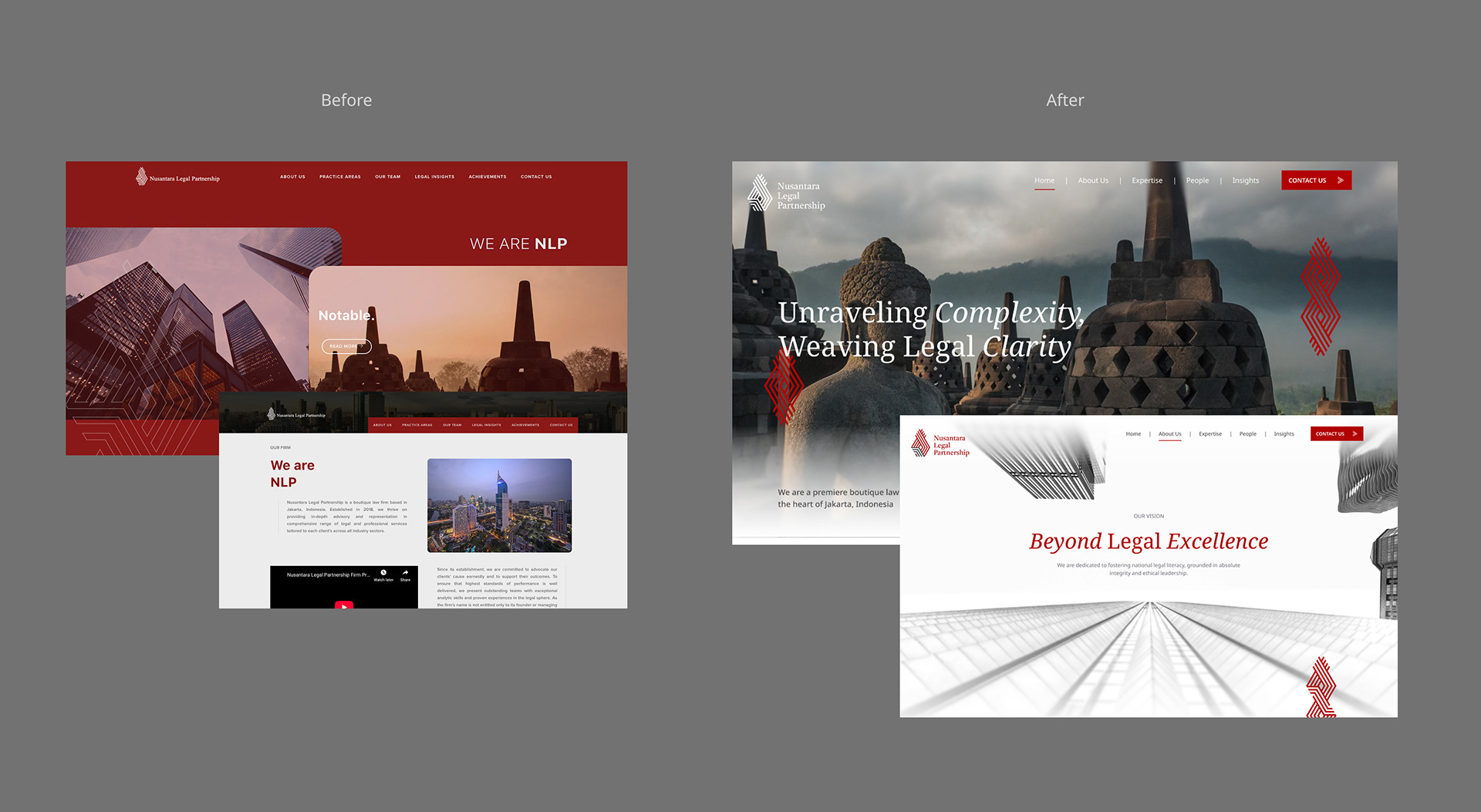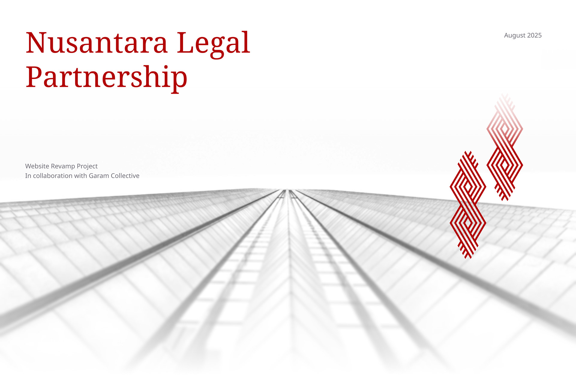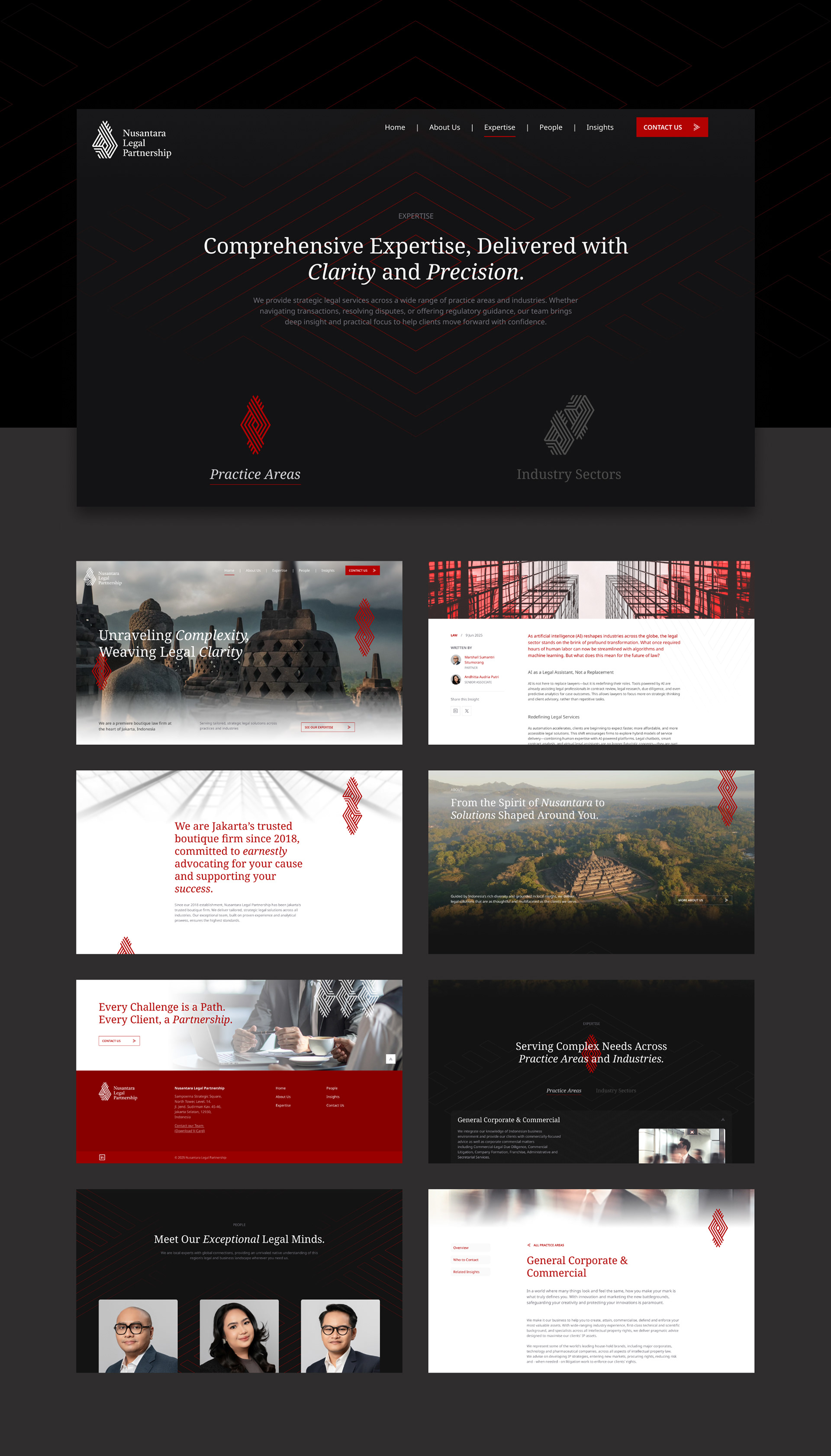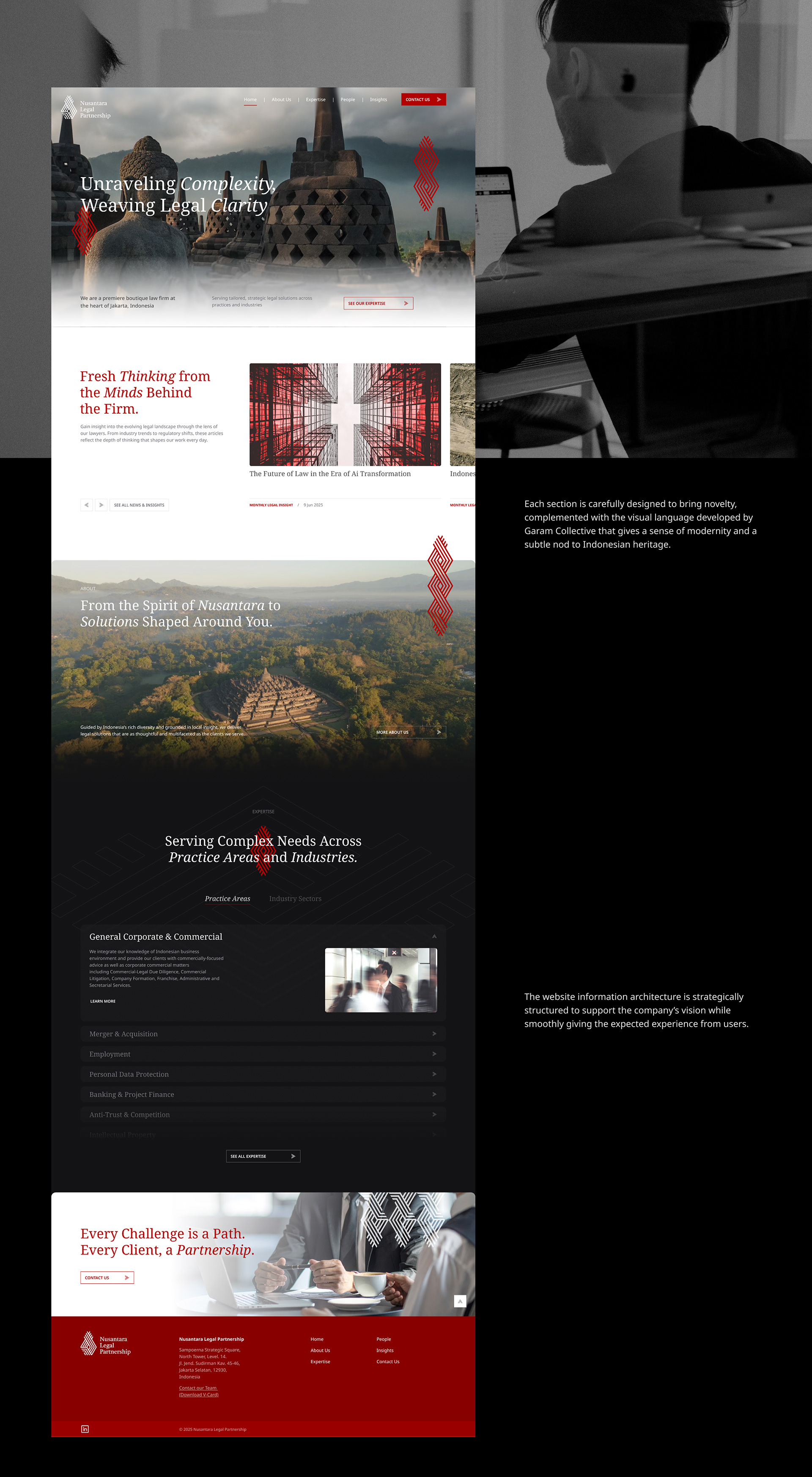 In collaboration with Garam Collective, I help Nusantara Legal Partnership, a boutique law firm in Jakarta, Indonesia to rejuvenate their website. The scope involves refining their site structure, information, and also refreshing UI. The direction was to make the site more modern, while still maintaining the heritage feel.
